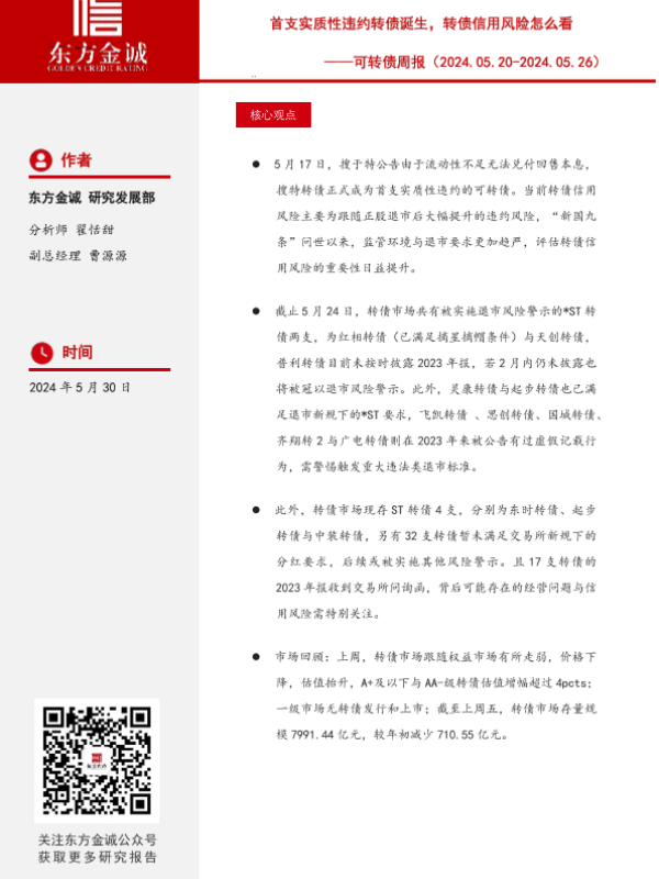 【东方金诚】【20240530】首支实质性违约转债诞生,转债信用风险怎么看-13页