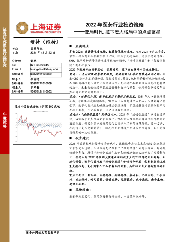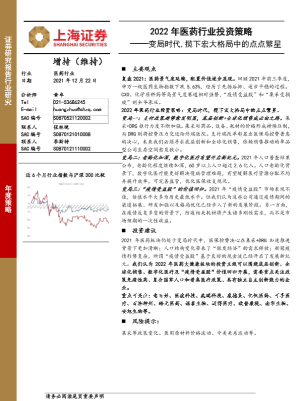 【上海证券】【20211222】2022年医药行业投资策略:变局时代,揽下宏大格局中的点点繁星-85页