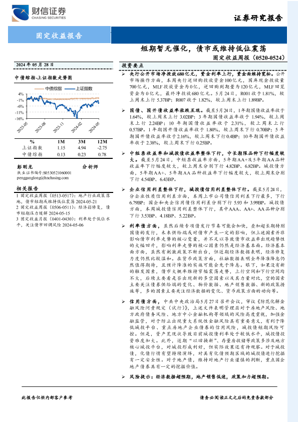 【财信证券】【20240528】固定收益:短期暂无催化,债市或维持低位震荡-10页