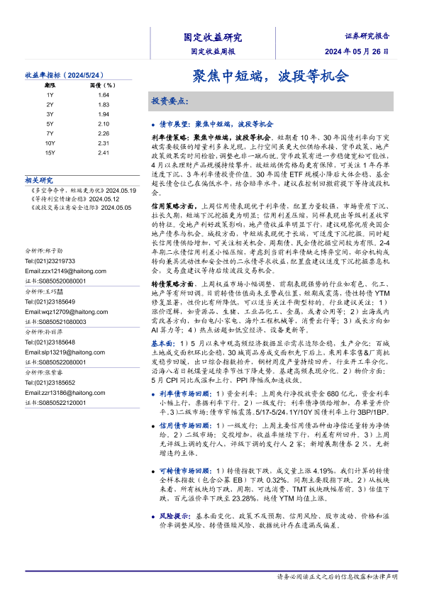 【海通证券】【20240526】固定收益:聚焦中短端,波段等机会-23页