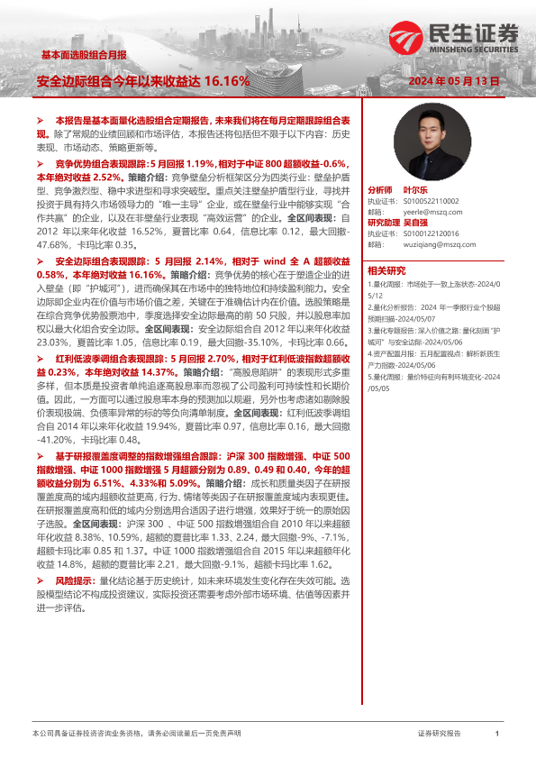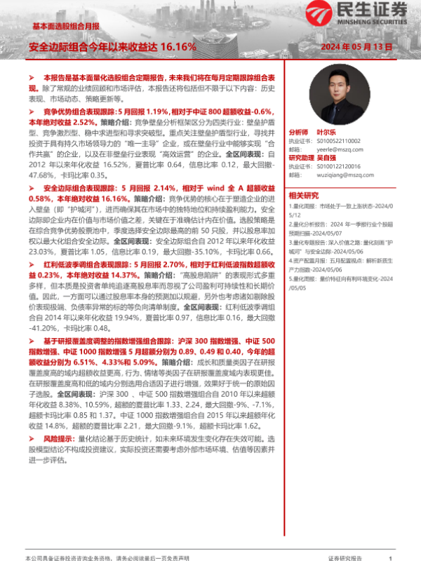 【民生证券】【20240513】基本面选股组合月报:安全边际组合今年以来收益达16.16%-16页