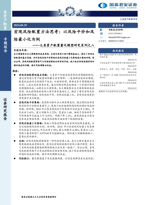 【国泰君安证券】【20240529】宏观风险配置方法思考:以风险平价和风险最小化为例-18页