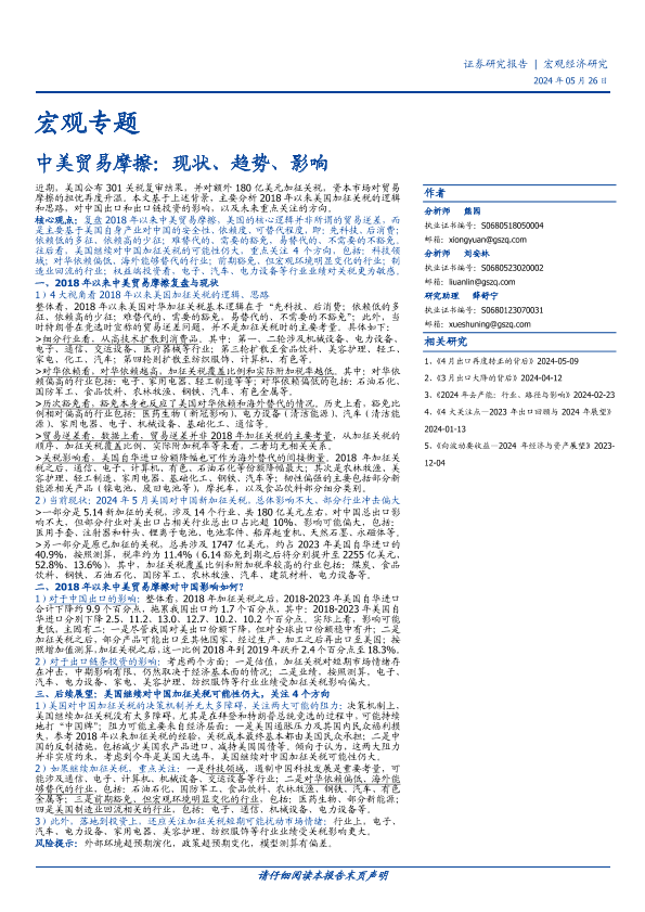 【国盛证券】【20240526】宏观专题:中美贸易摩擦,现状、趋势、影响-22页