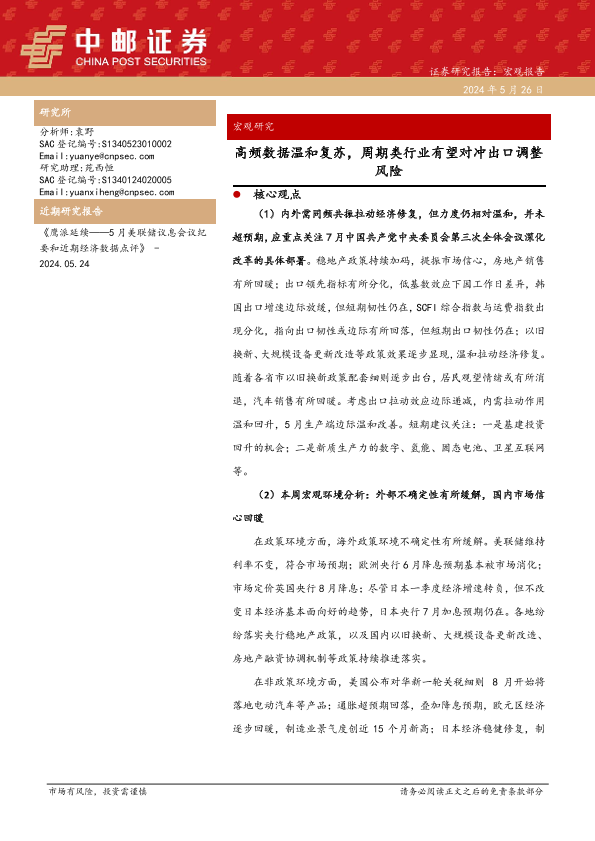 【中邮证券】【20240526】宏观研究:高频数据温和复苏,周期类行业有望对冲出口调整风险-33页