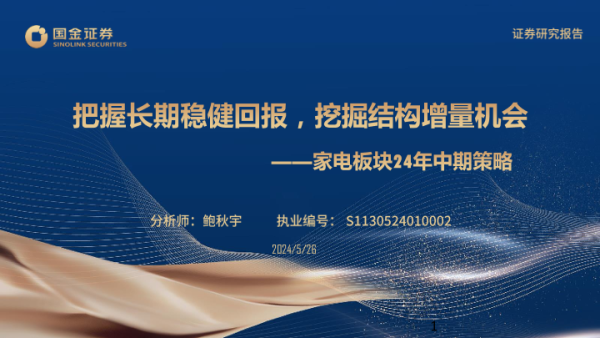 【国金证券】【20240526】家电行业板块24年中期策略:把握长期稳健回报,挖掘结构增量机会-39页