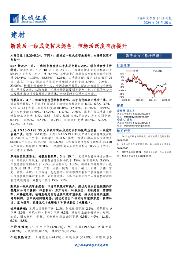 【长城证券】【20240525】建材行业:新政后一线成交暂未起色,市场活跃度有所提升-16页