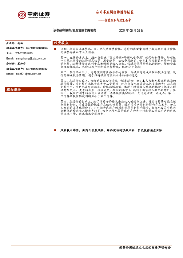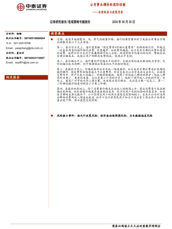 【中泰证券】【20240525】当前经济与政策思考:公用事业调价的国际经验-18页