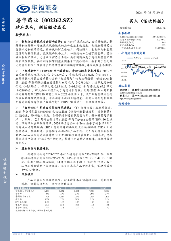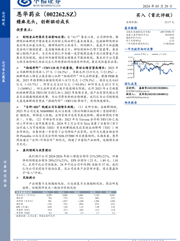 【华福证券】【20240529】恩华药业(002262)精麻龙头,创新驱动成长-14页