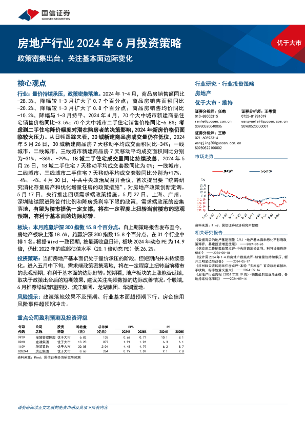 【国信证券】【20240530】房地产行业2024年6月投资策略:政策密集出台,关注基本面边际变化-15页