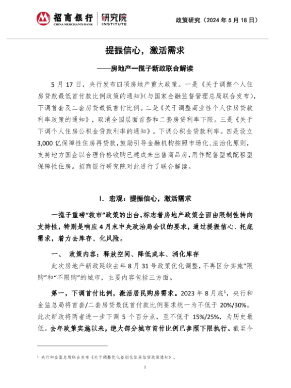 【招商银行】【20240518】房地产行业一揽子新政联合解读:提振信心,激活需求-10页