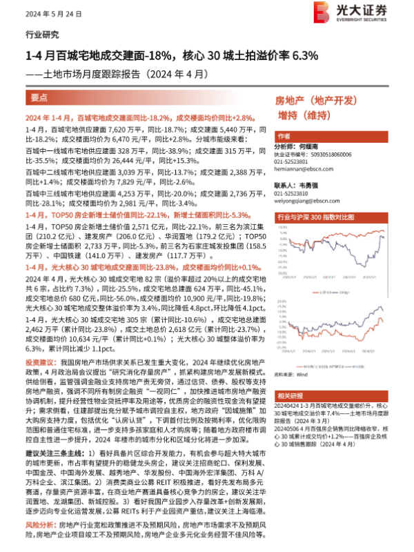 【光大证券】【20240524】房地产行业土地市场月度跟踪报告(2024年4月)-15页