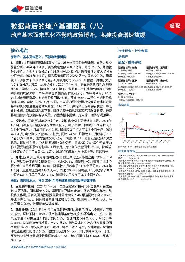 【国信证券】【20240526】房地产行业数据背后的地产基建图景(八):地产基本面未恶化不影响政策博弈,基建投资增速放缓-28页