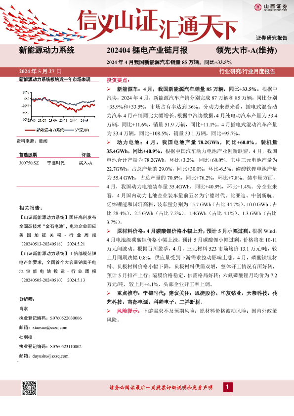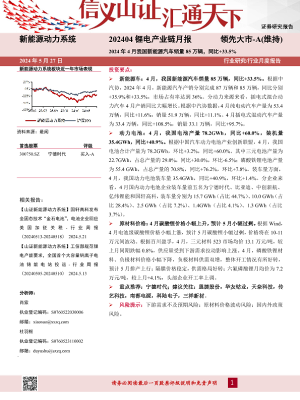 【山西证券】【20240527】新能源动力系统行业202404锂电产业链月报-15页
