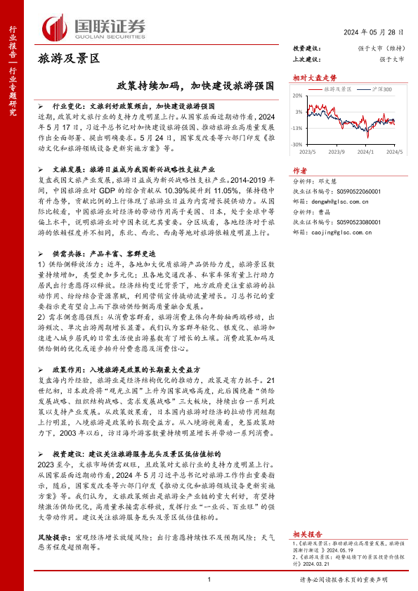 【国联证券】【20240528】旅游及景区行业专题研究:政策持续加码,加快建设旅游强国-14页