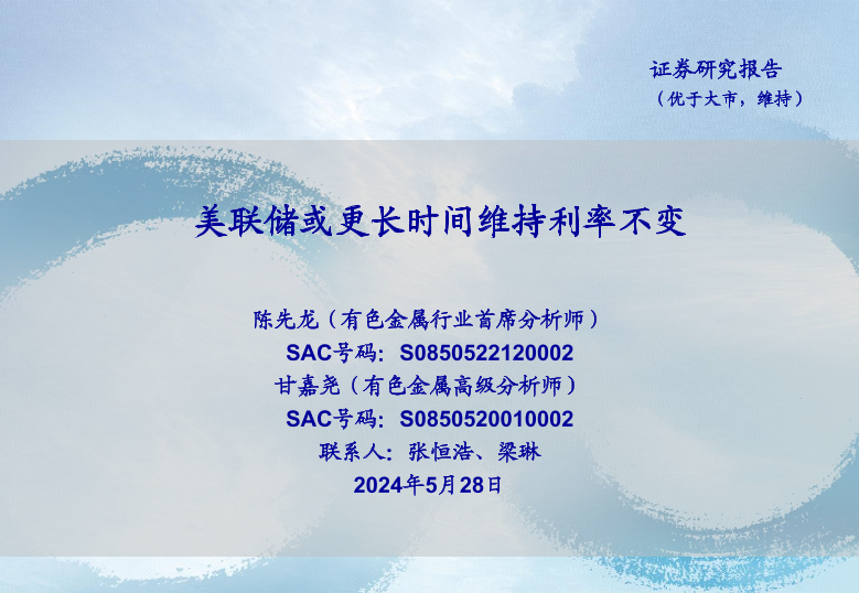 【海通证券】【20240528】有色金属行业:美联储或更长时间维持利率不变-25页