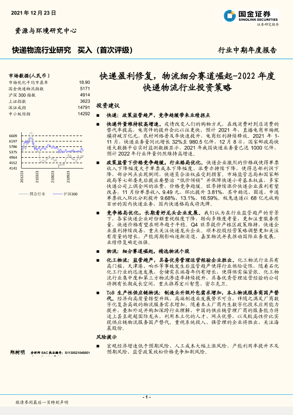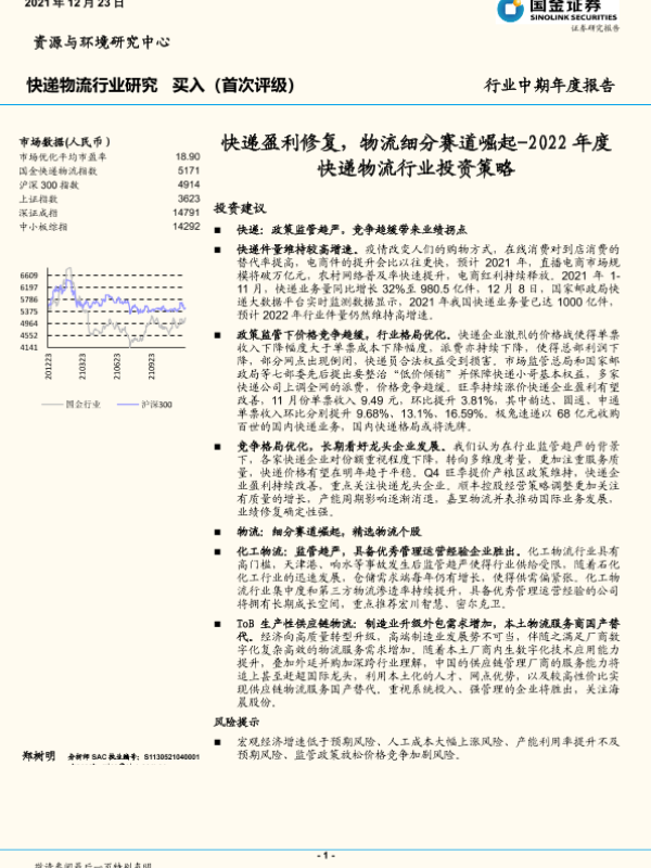 【国金证券】【20211223】2022年度快递物流行业投资策略:快递盈利修复,物流细分赛道崛起-21页