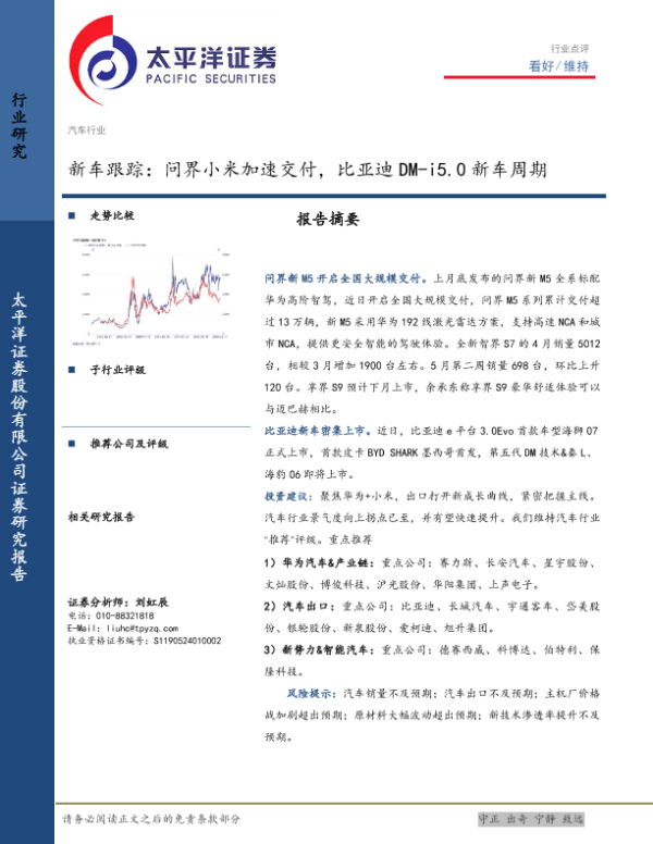 【太平洋证券】【20240526】汽车行业新车跟踪:问界小米加速交付,比亚迪DM-i5.0新车周期-11页
