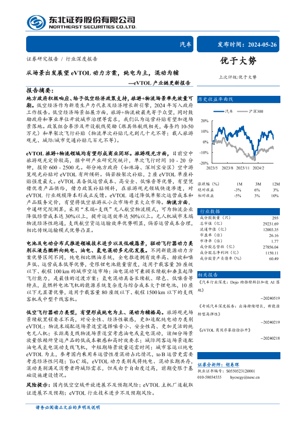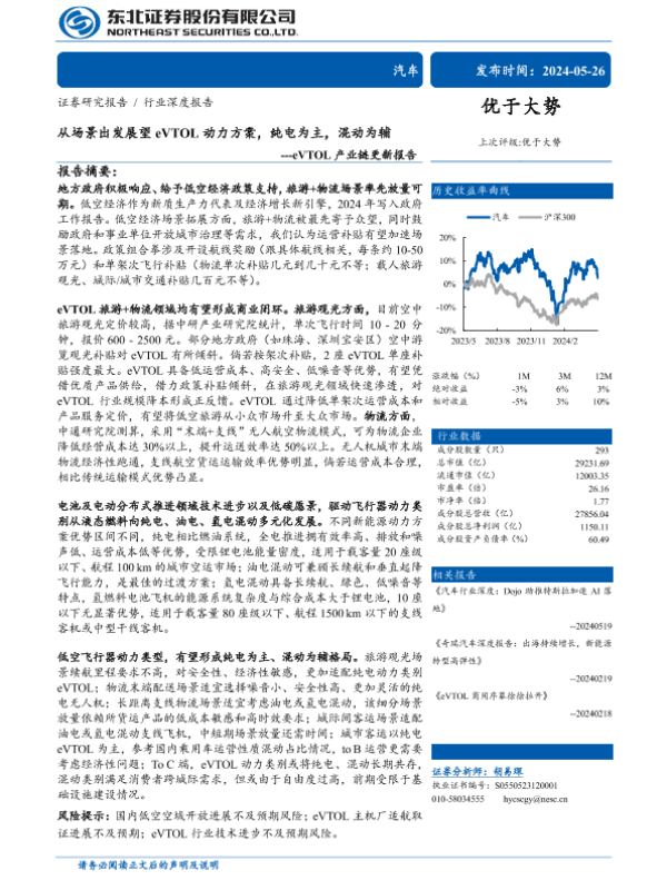 【东北证券】【20240526】从场景出发展望 eVTOL动力方案,纯电为主,混动为辅---eVTOL产业链更新报告-32页