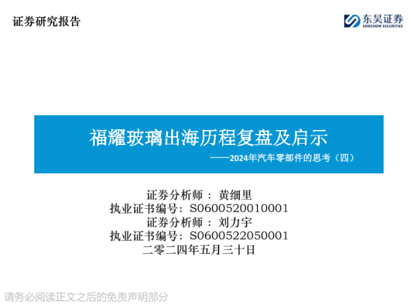 【东吴证券】【20240530】汽车零部件行业2024年汽车零部件的思考(四):福耀玻璃出海历程复盘及启示-40页