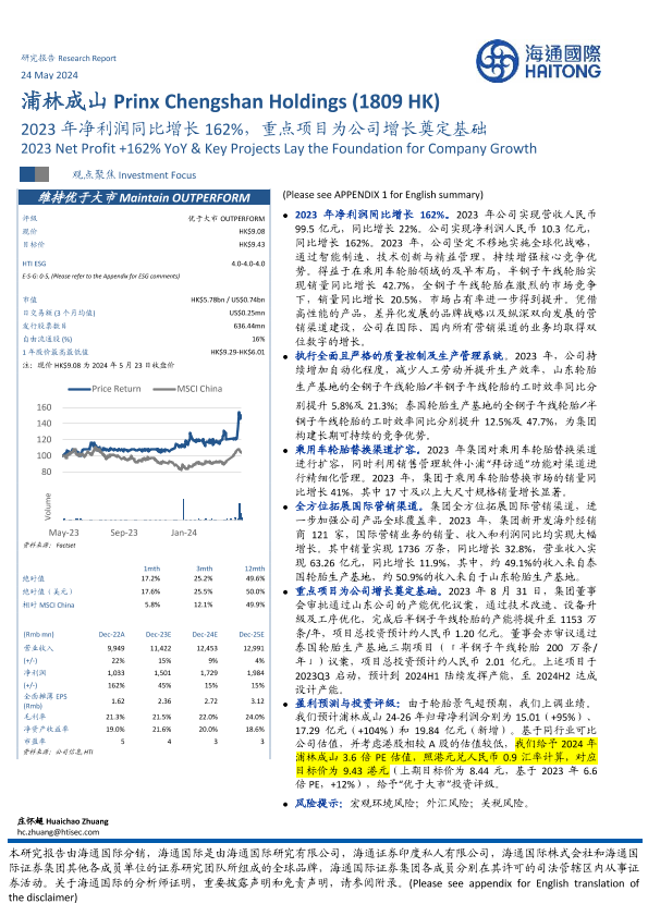 【海通国际】【20240524】浦林成山(1809.HK)2023年净利润同比增长162%,重点项目为公司增长奠定基础-12页
