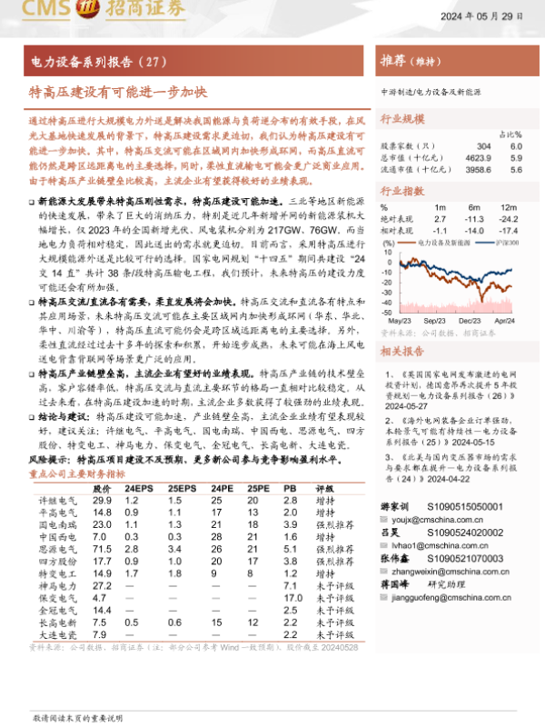 【海通证券】【20240529】电力设备行业系列报告(27):特高压建设有可能进一步加快-17页