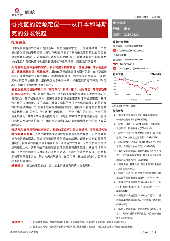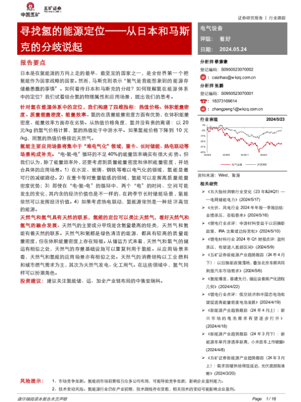 【五矿证券】【20240524】电气设备行业:寻找氢的能源定位,从日本和马斯克的分歧说起-16页