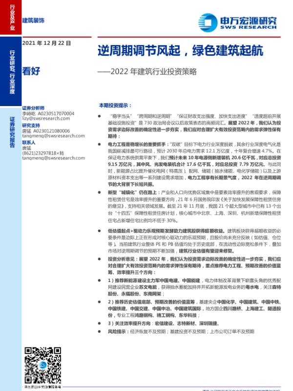 【申万宏源】【20211222】2022年建筑行业投资策略:逆周期调节风起,绿色建筑起航-29页