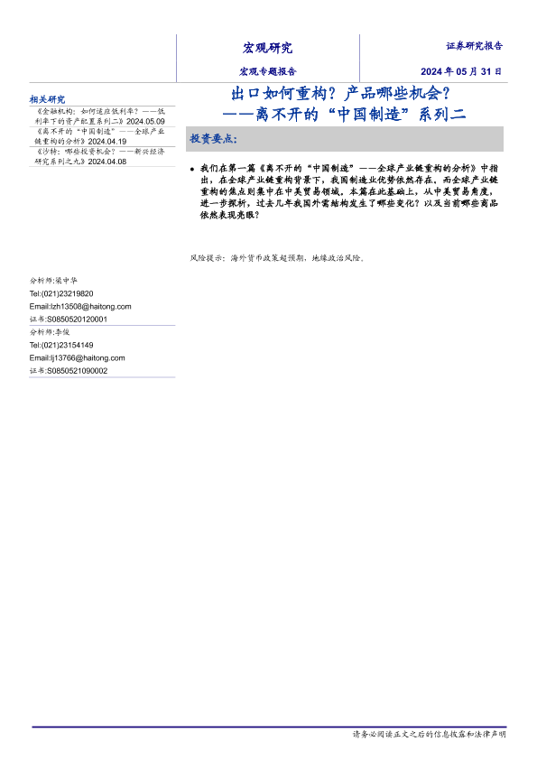 【海通证券】【20240531】离不开的“中国制造”系列二:出口如何重构?产品哪些机会?-35页