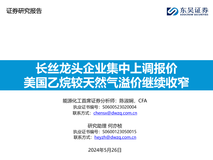【东吴证券】【20240526】能源化工行业:长丝龙头企业集中上调报价,美国乙烷较天然气溢价继续收窄-46页