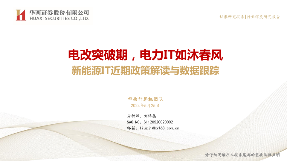 【华西证券】【20240525】计算机行业新能源IT近期政策解读与数据跟踪:电改突破期,电力IT如沐春风-23页