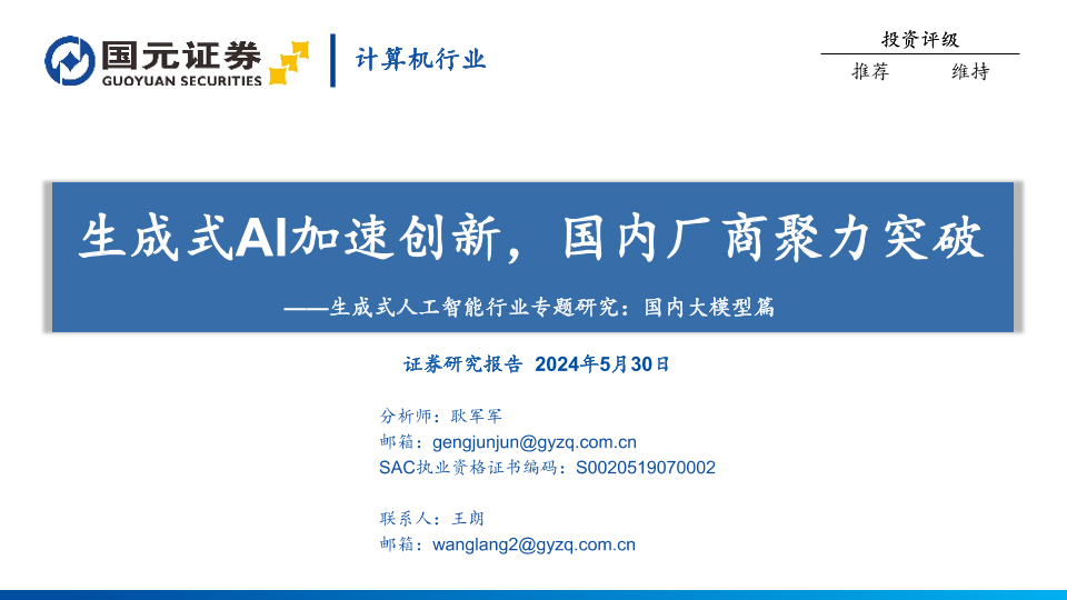 【国元证券】【20240530】计算机行业生成式人工智能行业专题研究:国内大模型篇,生成式AI加速创新,国内厂商聚力突破-40页