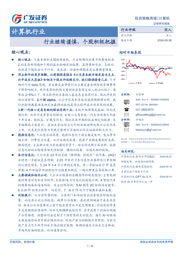 【广发证券】【20240526】计算机行业:行业继续谨慎、个股积极把握-12页