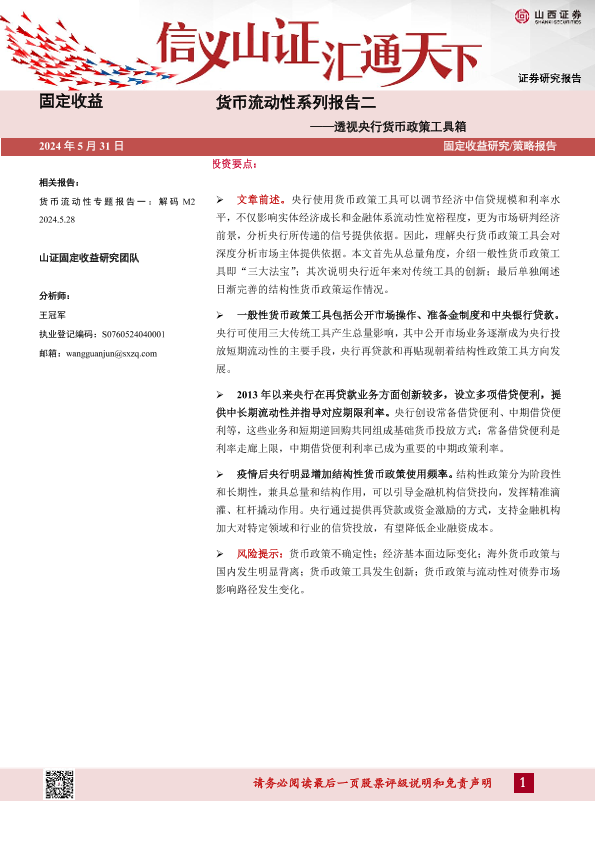 【山西证券】【20240531】货币流动性系列报告二:透视央行货币政策工具箱-19页