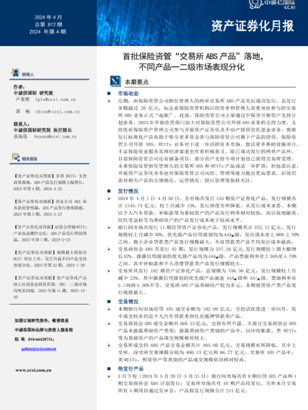 【中诚信国际】【20240528】资产证券化月报:首批保险资管“交易所ABS产品”落地,不同产品一二级市场表现分化-23页