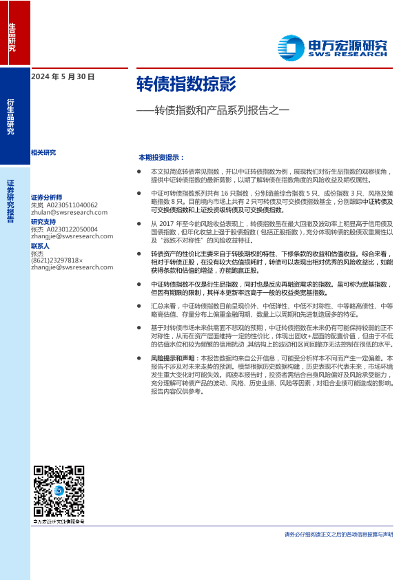 【申万宏源】【20240530】转债指数和产品系列报告之一:转债指数掠影-13页