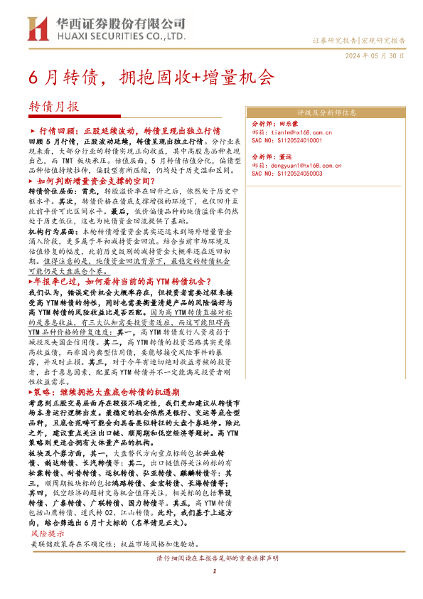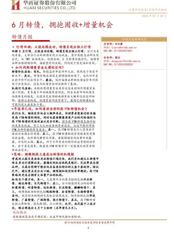 【华西证券】【20240530】6月转债,拥抱固收+增量机会-21页