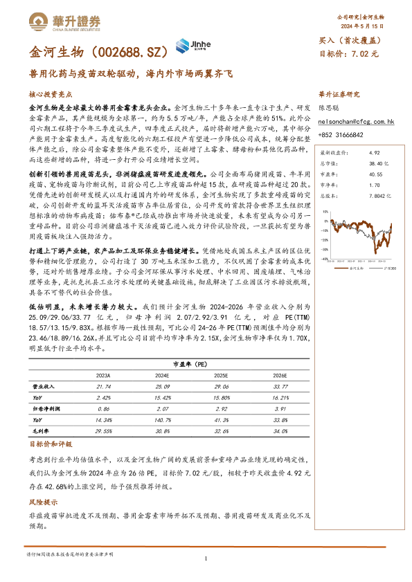 【华升证券】【20240515】金河生物-兽用化药与疫苗双轮驱动,海内外市场两翼齐飞-31页