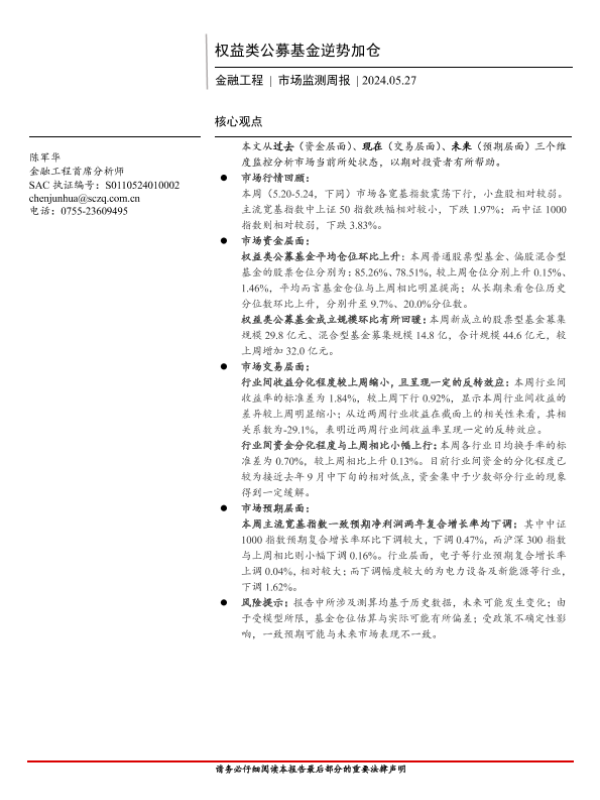 【首创证券】【20240527】金融工程市场监测:权益类公募基金逆势加仓-13页
