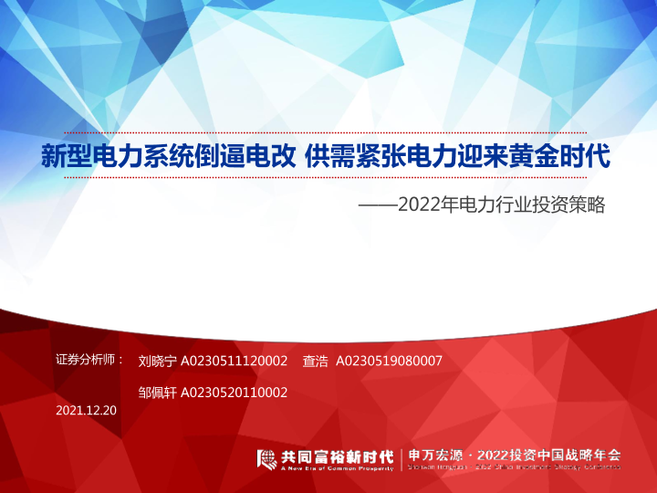 【申万宏源】【20211220】2022年电力行业投资策略:新型电力系统倒逼电改,供需紧张电力迎来黄金时代-65页