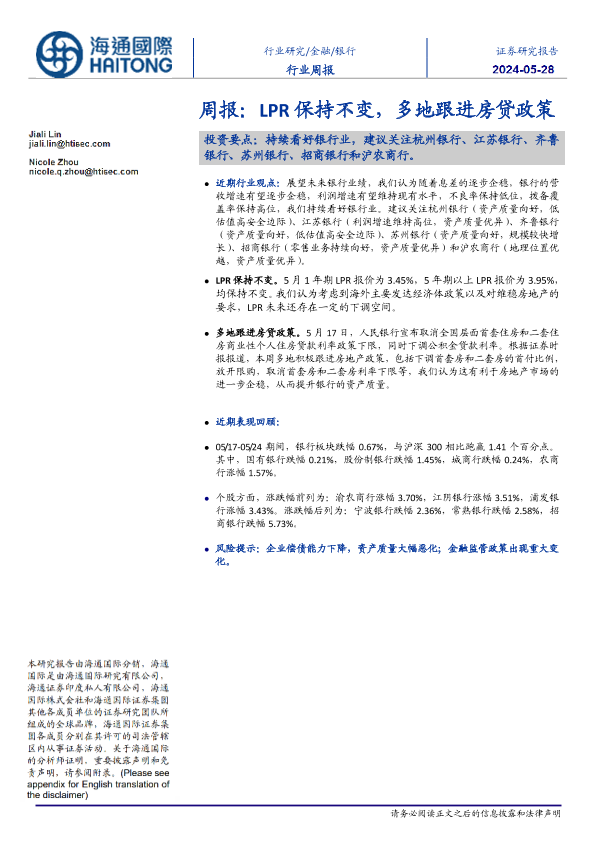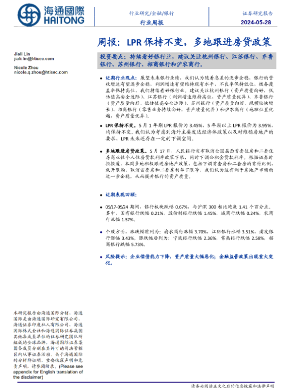 【海通国际】【20240528】周报:LPR保持不变,多地跟进房贷政策-16页