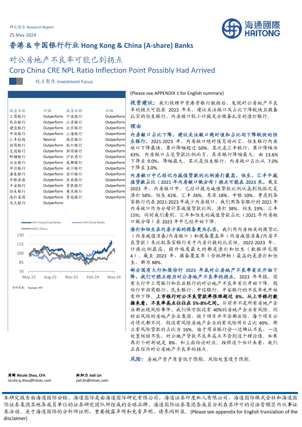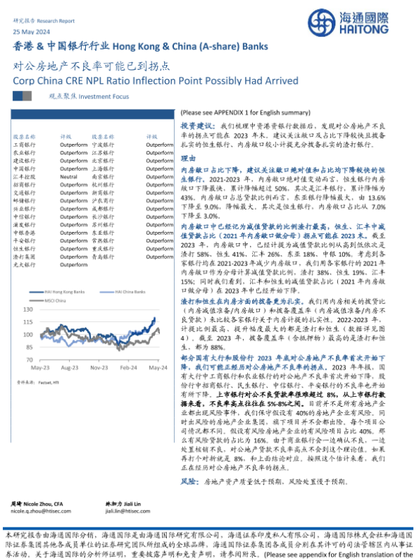 【海通国际】【20240525】香港&中国银行行业:对公房地产不良率可能已到拐点-12页