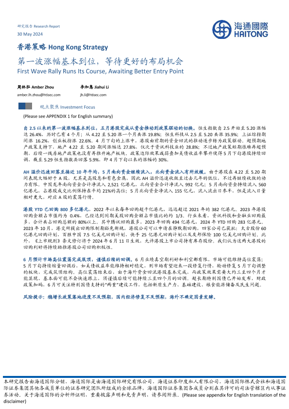 【海通国际】【20240530】香港策略:第一波涨幅基本到位,等待更好的布局机会-13页
