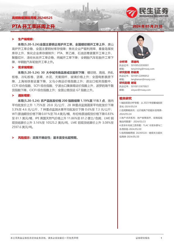 【民生证券】【20240525】高频数据跟踪:PTA开工率环周上升-18页