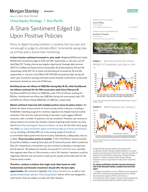 【Morgan Stanley】【20240522】中国股市策略:A股市场情绪因积极政策而上升-11页