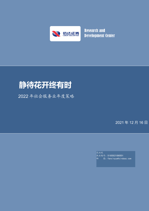 【信达证券】【20211216】2022年社会服务业年度策略:静待花开终有时-27页