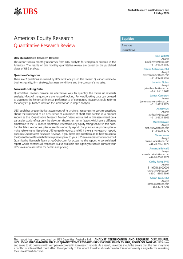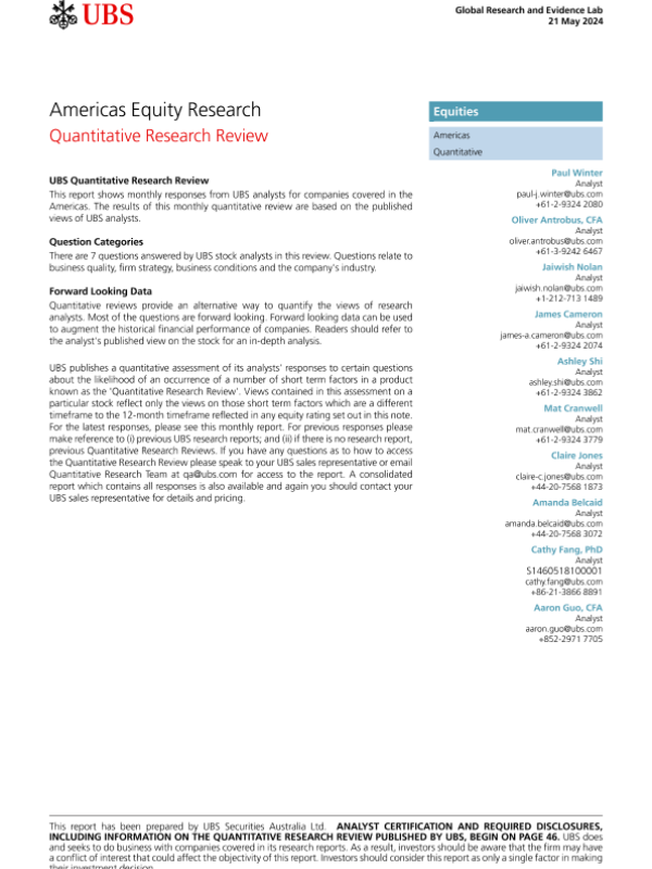 【UBS Securities Australia Ltd.】【20240521】UBS Equities - Americas Equity Research Quantitative Research Review-50页