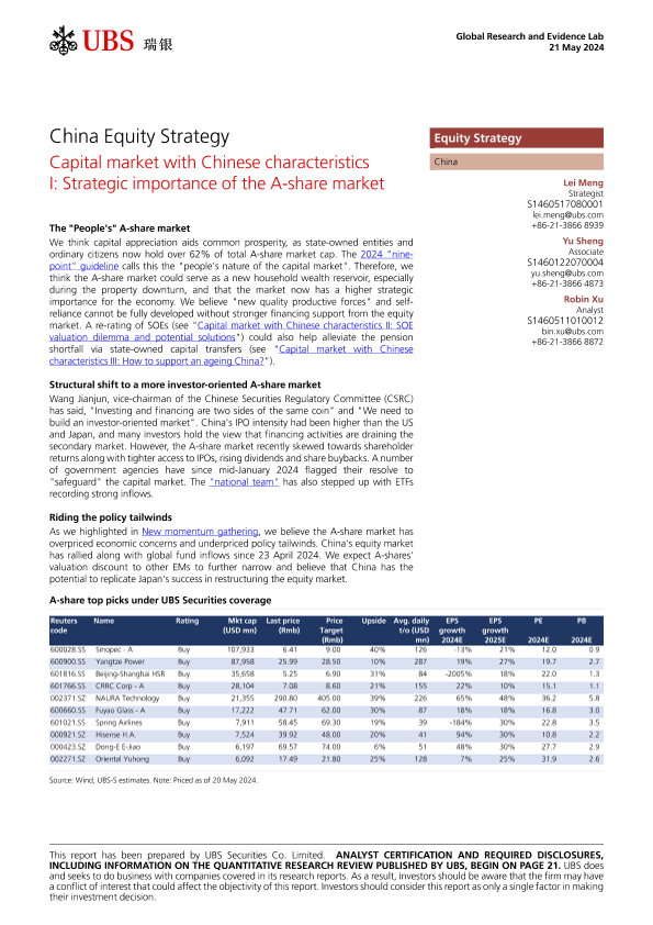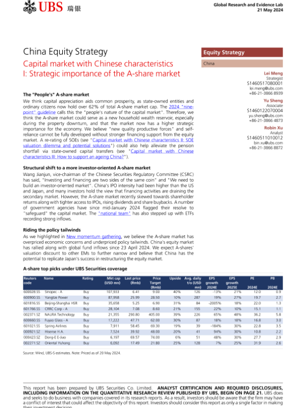 【UBS Securities Co. Limited】【20240521】UBS Equities-China Equity Strategy Capital market with Chinese characteristics I Strategic importance of the A-share market-25页