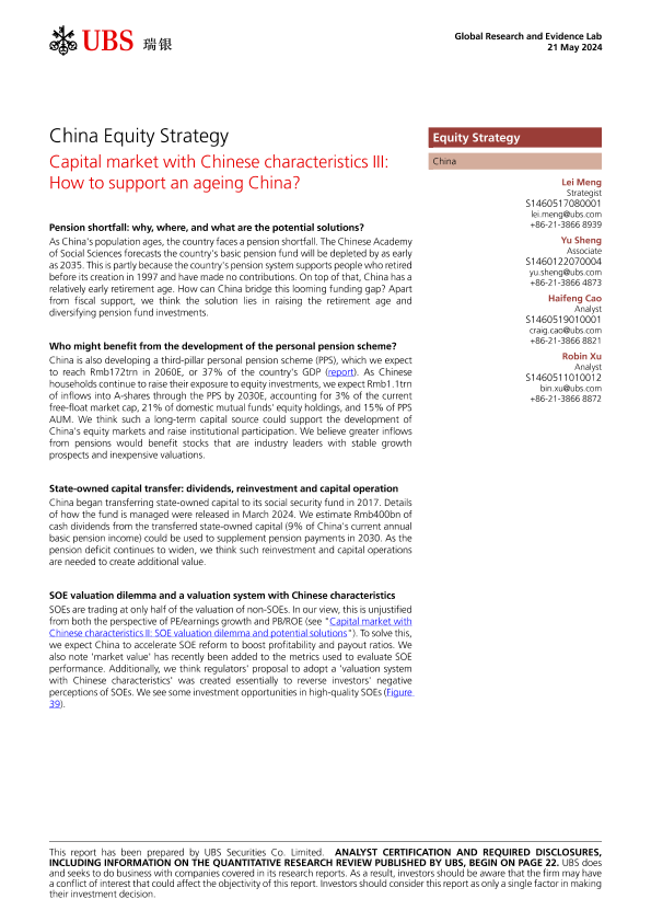 【UBS Securities Co. Limited】【20240521】UBS Equities-China Equity Strategy Capital market with Chinese characteristics III How to support an ageing China?-27页