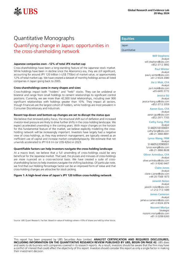 【UBS Securities Asia Limited】【20240520】Quantifying change in Japan opportunities in the cross-shareholding network-46页