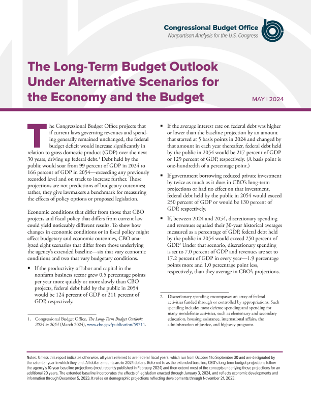 【Congressional Budget Office】【20240501】国会预算办公室-经济和预算备选方案下的长期预算展望-9页